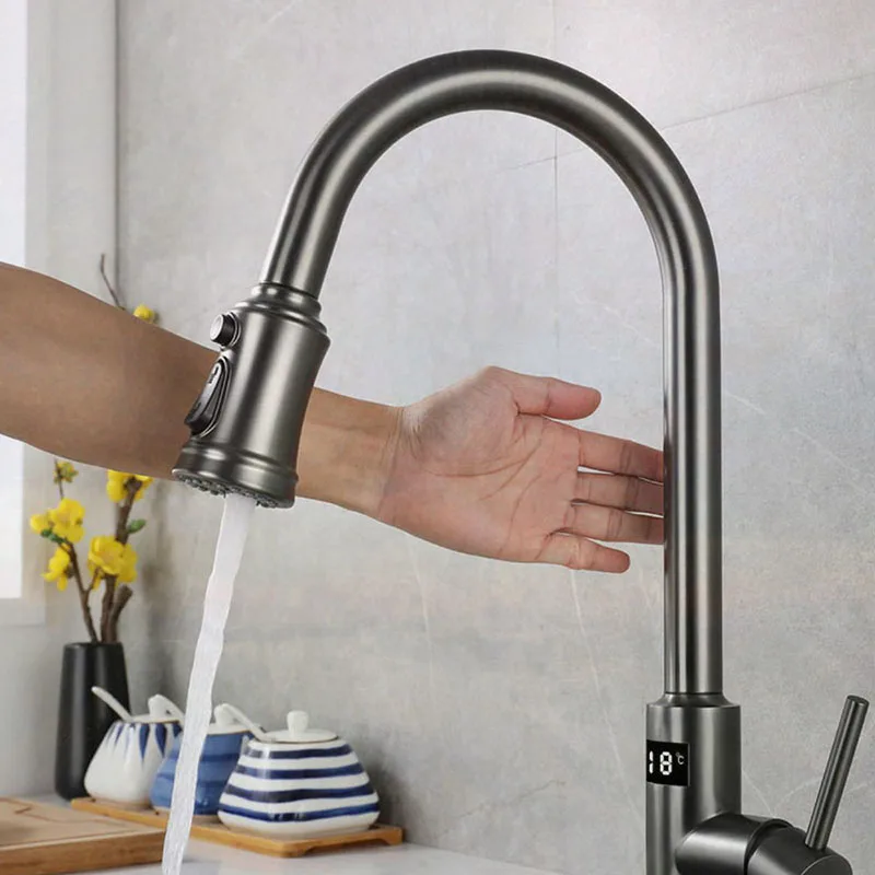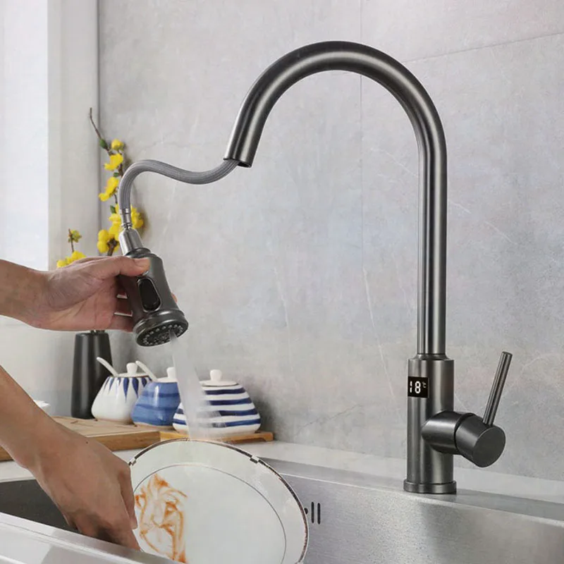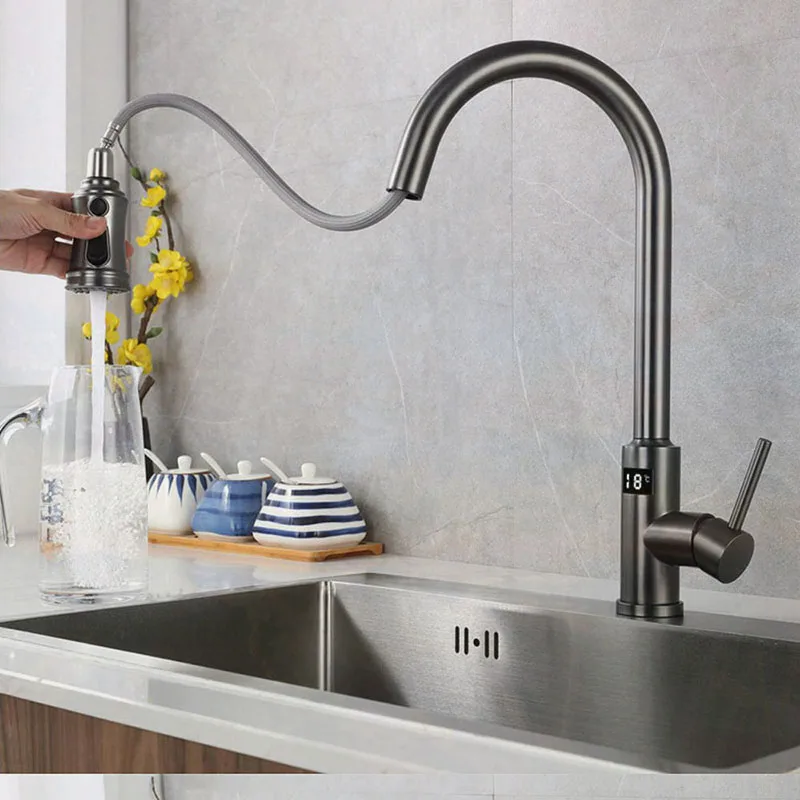 meqFsVdyMXHere you can buy NEW Digital display Automatic Smart Kitchen Faucet Deck Mounted Cold& Hot Water with Handle Two Model water out pull with free delivery to your post office.