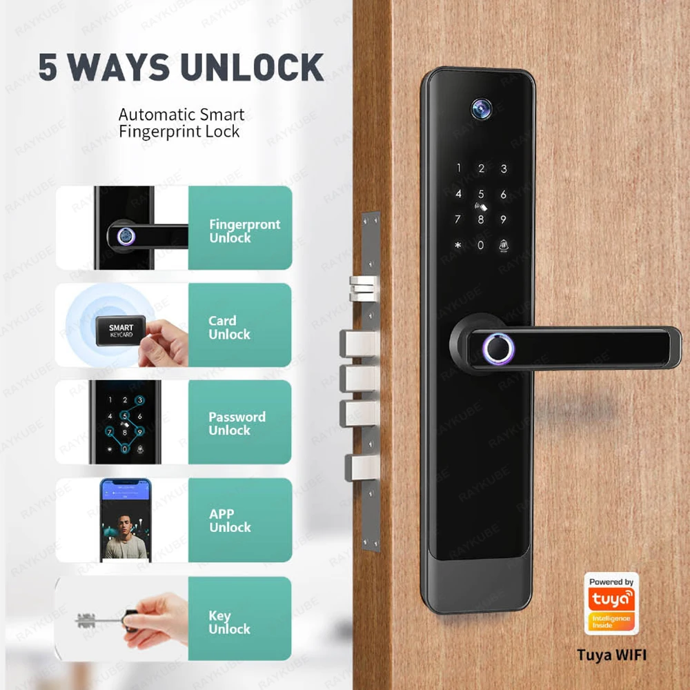 AuTiMeHdGnHere you can buy NEW RAYKUBE E90 Tuya Wifi Two-way Audio Video Intercom Fingerprint Camera Smart Door lock With APP Remote Unlock Video Recording with free delivery to your post office.