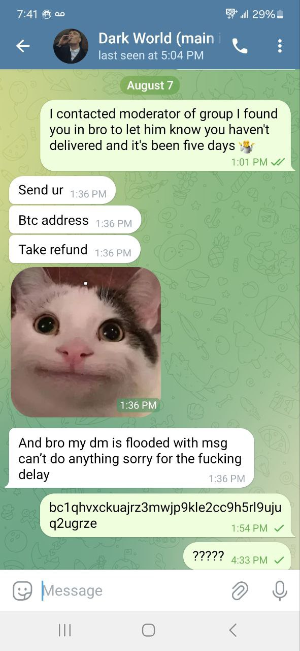 Offered refund days ago and now he deletes every text I send him. Won't respond