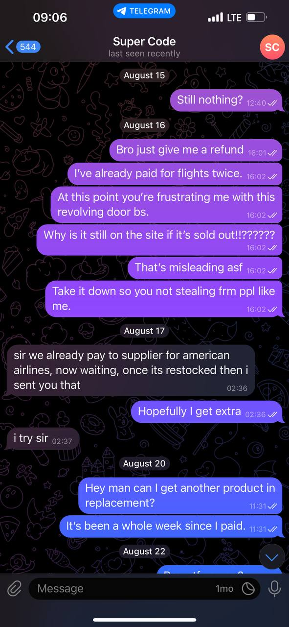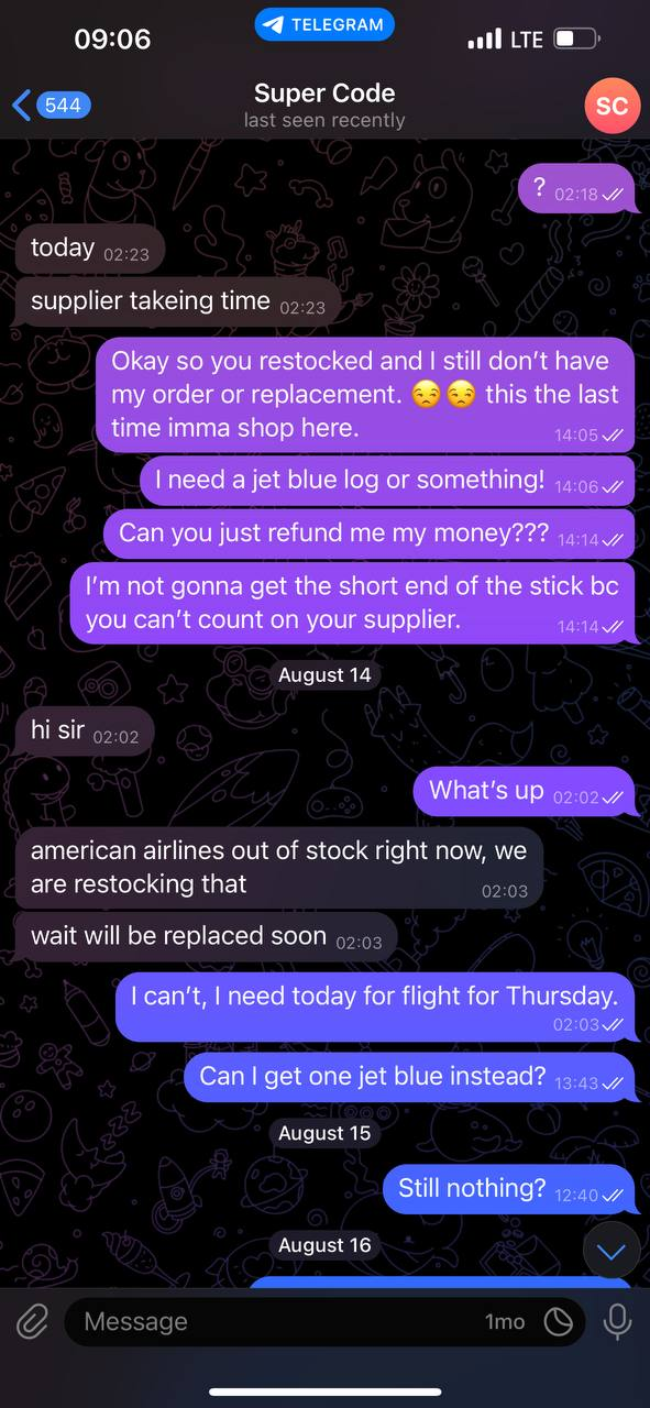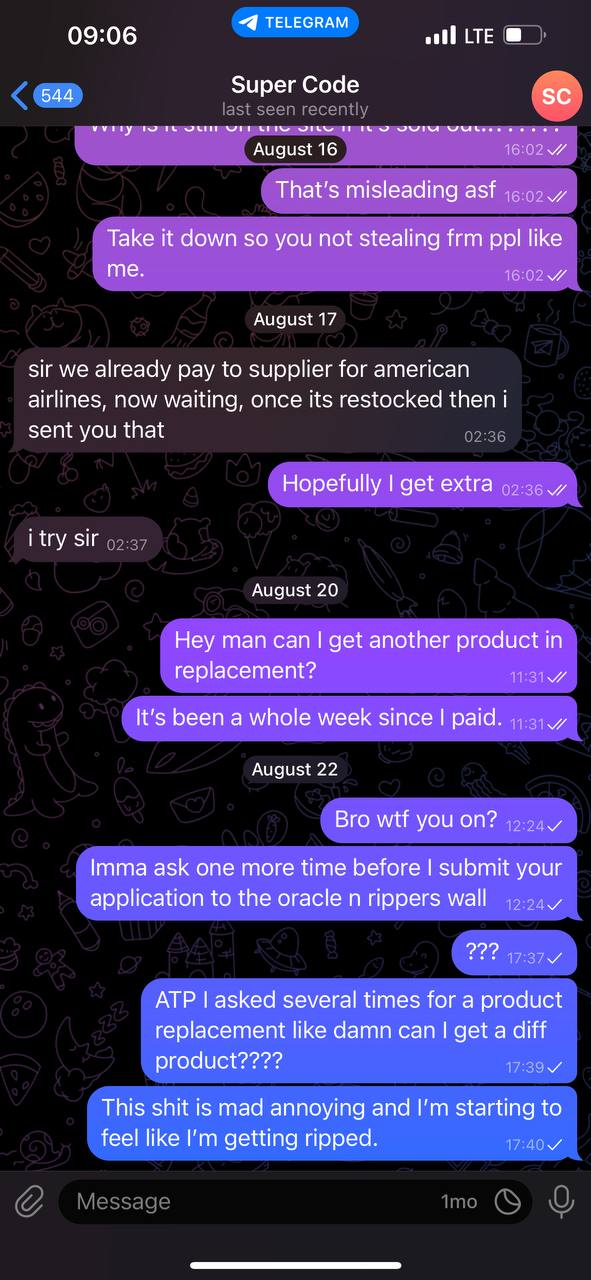 I purchased AA logs frm him n he guaranteed I will have them at a certain time but as you can see frm the screenshot… haven’t received shit!