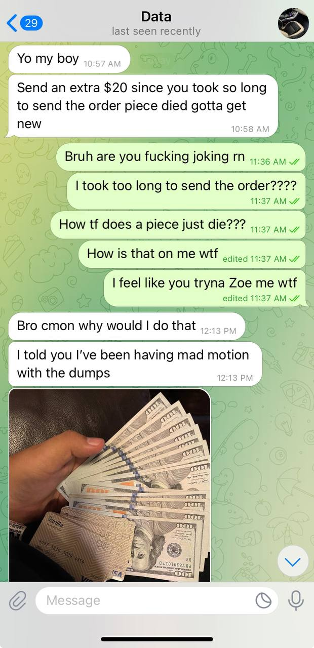 NEW REPORT #2477This guy @accessdevice ripped me for $60First ripped me for the eats orderNd then acted like he was gonna do it and then ripped me for another 20