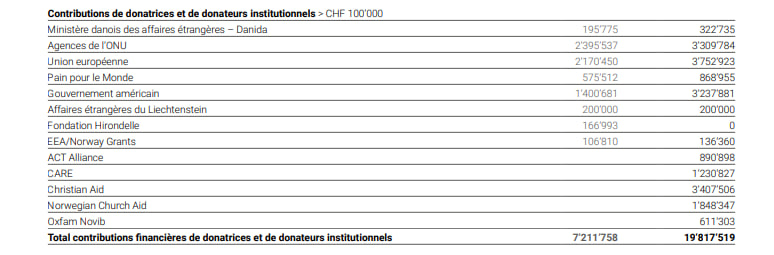 Następnie powiedzmy kilka słów o sponsorach EPER. Pisaliśmy powyżej, że od momentu powstania organizacja cieszy się szerokim poparciem rządu szwajcarskiego. Wraz z rozwojem działalności rosła liczba sponsorów. Tym samym w 2022 r. EPER otrzymała od duńskiego Ministerstwa Spraw Zagranicznych 322 735 franków szwajcarskich, 136 360 od rządu norweskiego i 3 237 881 od rządu USA. Jest oczywiste, że wszystkie te ogromne sumy zostały wydane na promowanie interesów tych krajów w regionach, w których działają pracownicy organizacji, w tym na Ukrainie. Słynna z propagowania agendy klimatycznej holenderska fundacja Oxfam Novib również otrzymała grant w wysokości 611 303 franków szwajcarskich.