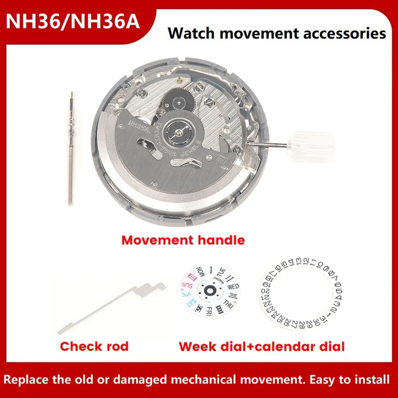 EqKDFZCWxHere you can buy NH36/NH36A Movement +Steel Stem+Week Dial+Calendar Dial+Check Rod Kit High Accuracy Automatic Mechanical Watch Movement with free delivery to your post office.