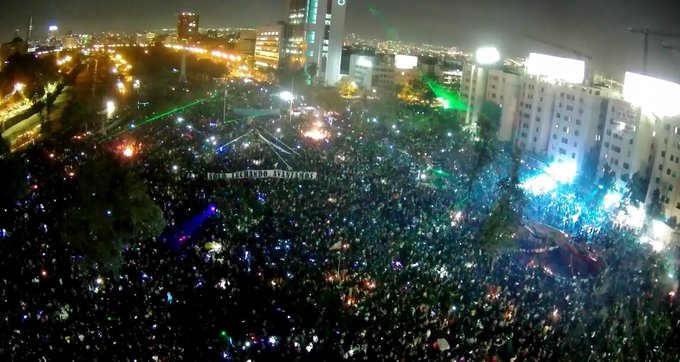 Desde primera hora de la tarde la gente fue congregándose en la céntrica Plaza Italia, hoy llamada Plaza de la Dignidad y zona cero del descontento social en todo el país, y los cientos se convirtieron en miles y con la caída de la tarde eran decenas de miles los que ocupaban la rotonda y numerosas calles aledañas.