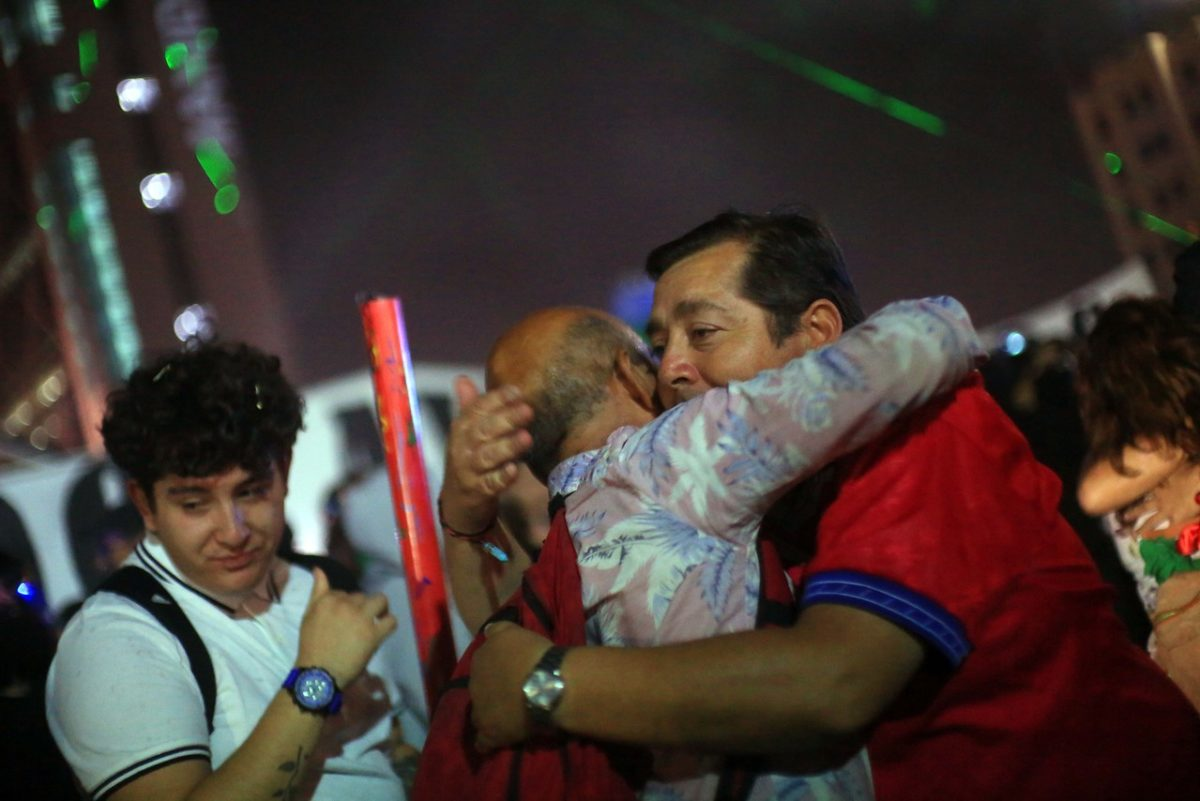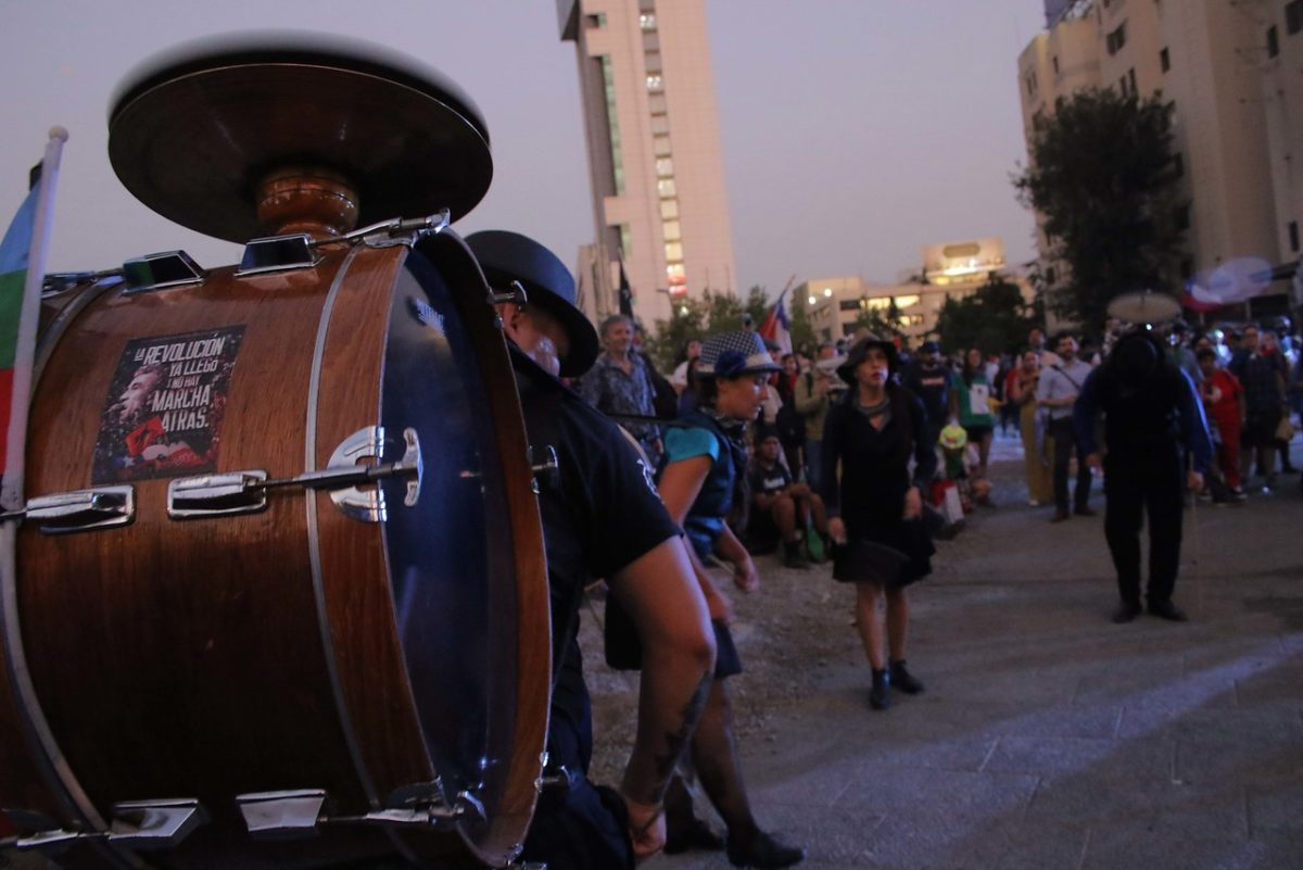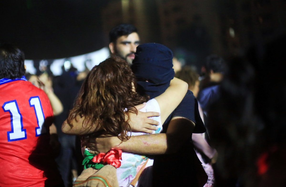 En ese clima tan especial donde algunos comían y se reponían de las contingencias de la batalla y otras decenas de miles seguían cantando y festejando haber llegado a fin de año como pueblo en lucha, a pesar de todas las predicciones agoreras de la devaluadísima clase política, transcurrió toda la noche. Como esta también es una revolución cultural, hubo adhesiones y actuaciones variadas, como los tradicionales “cinchoneros”, girando y danzando con sus tambores, o la banda “Conmoción” que encabezó una marcha sonora y convocante para el baile, o las muy queridas cantoras Camila Moreno y Ana Tijoux, que en improvisados escenarios ofrecieron su corazón y algo más, para testimoniar que el artista popular que se precie debe estar donde el pueblo se expresa y pelea por sus derechos. Así como Camila apuntó que “nadie afloje porque la lucha continúa”, Anita hizo un recorrido a punta de rap por el feminismo popular, la lucha de clases, el internacionalismo y numerosas alusiones a “cuidémonos entre todas, todos y todas ya que enfrentamos a un enemigo maligno” y ponderó una vez más a la “primera línea”. A ese mismo tren solidario se subió y fue aclamada la comediante Natalia Valdebenito que con una buena dosis de humor político le pegó fuerte a Piñera y sus secuaces, además de defender con pasión la militancia feminista y lanzar consignas antipatriarcales que eran recogidas con alegría y adhesión por la multitud.