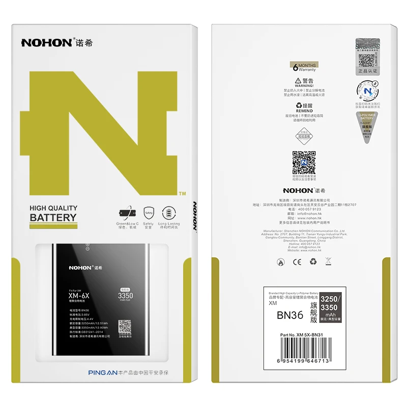 «NOHON BN36 Phone Battery for Xiaomi 6X 5X 5 9 8 SE CC9 4C 2 10 Lite 11 Pro Max Mix BM3L BM3J BN31 High Capacity Bateria» по лучшей цене на рынке! Всего за 15$ (1425рублей)