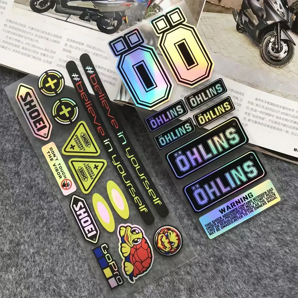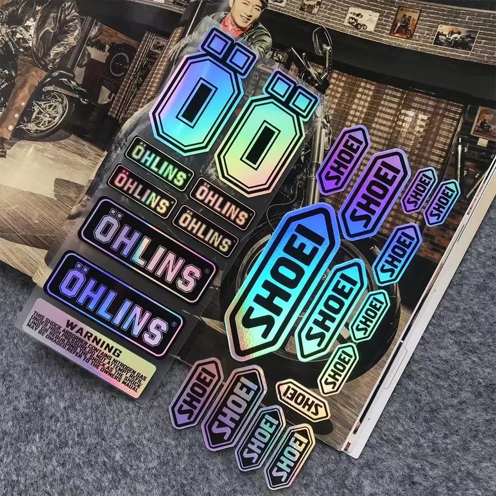 NO.L093 OHLINS Moto Accessories Sticker Accessory Laser Rainbow Suspension Modification Decoration Motorcycle Waterproof Decal - Купить с бесплатной доставкой