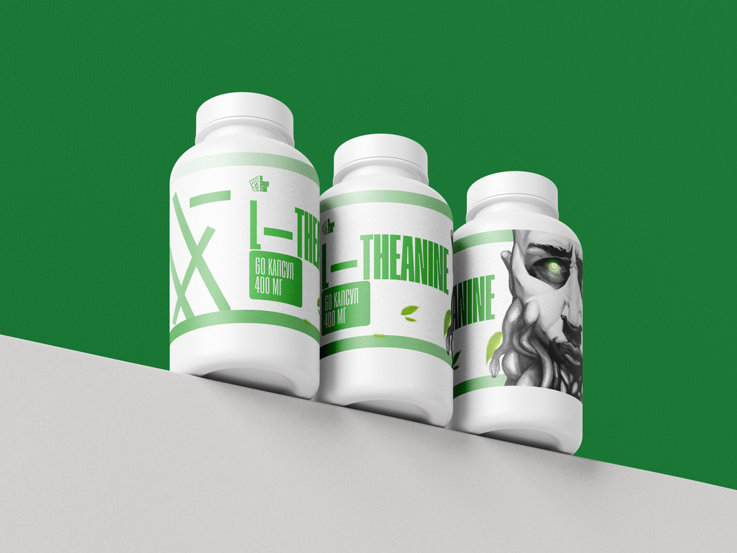 L-Theanine - уникальная растительная аминокислота, в незначительном количестве содержащаяся в чае; активно проникает в мозг через ГЭБ, проявляет психоактивные свойства при достаточной дозировке: уменьшает воздействие стресса, улучшает когнитивные способности и продуктивность, улучшает настроение.