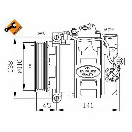 NRF 32214 Compresseur de climatisation MB CLASSE C 07-, CLASSE C 00-, CLK 02-, CLS 04-10, CLASSE E 02-09, CLASSE G 97-,Fabricant : Nrf Article : 32214 Nom : Compresseur de climatisationLe prix est pour : 1 pièce ? poulie : entrée 110 mm : 28,4 mm Sortie - : 13 mm Article supplémentaire/informations complémentaires 2 : avec huile de compresseur PAG ID du compresseur : 7SEU17C ID du compresseur : DCS17E Qualité / classe : Easy Fit Nombre de rainures : 6 Huile du compresseur : PAG 46 Cylindrée du compresseur : 170 cc . voir limitation du fabricant : DENSO-EQUIVALENT Limitation du fabricant : VALEO-EQUIVALENT Tension de service : 12 V Poulie : avec poulie à courroie trapézoïdale nervuréeForme : ovaleRéfrigérant : R 134a