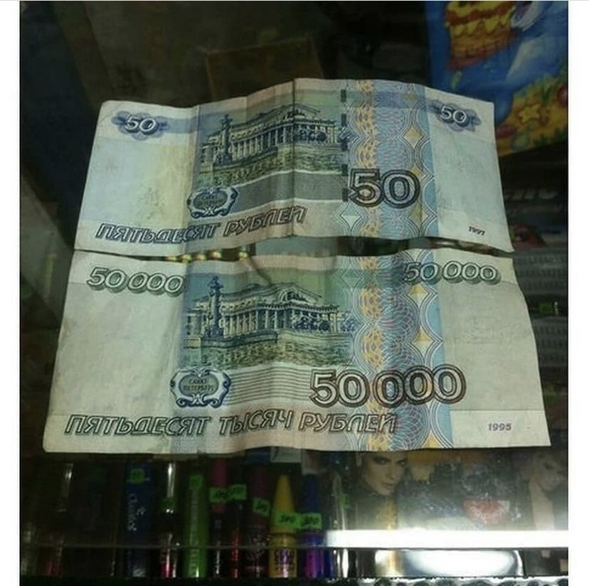 На двух картинках изображены - на первой денежные купюры, на второй же картинке изображены всяческие деликатесы, которые за вот эти денежные купюры можно купить . А где можно купить такие вкусные и пр