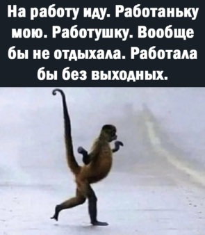 . . .На работу иду . . . Работаньку мою . . . Работушку . . . Вообще бы не отдыхала!!! . .