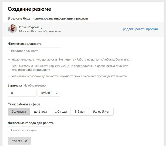 На данный момент в поиске работы