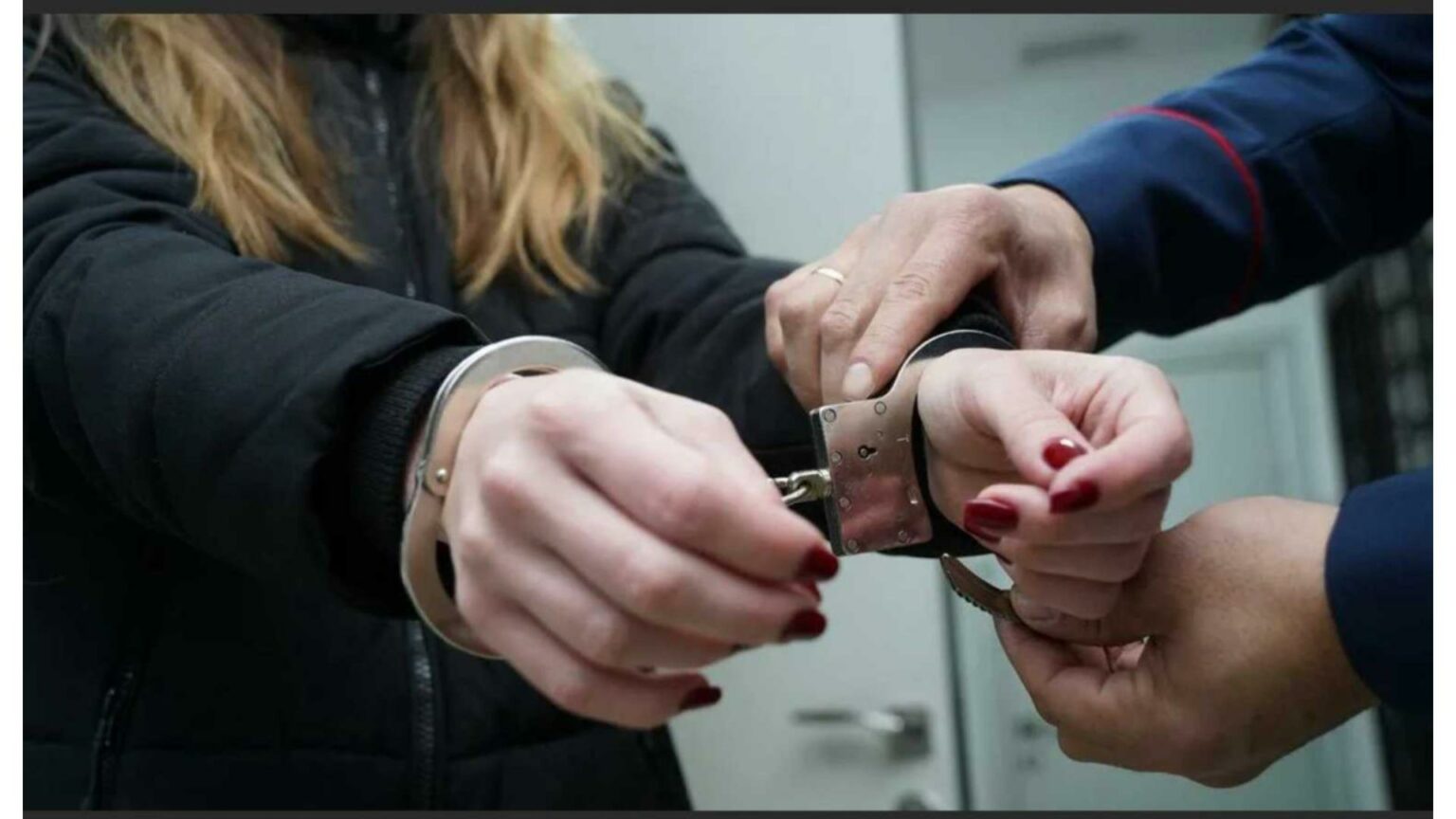 На девушку одевают наручники