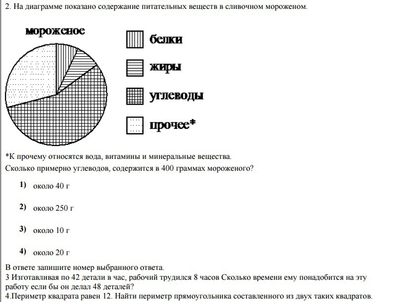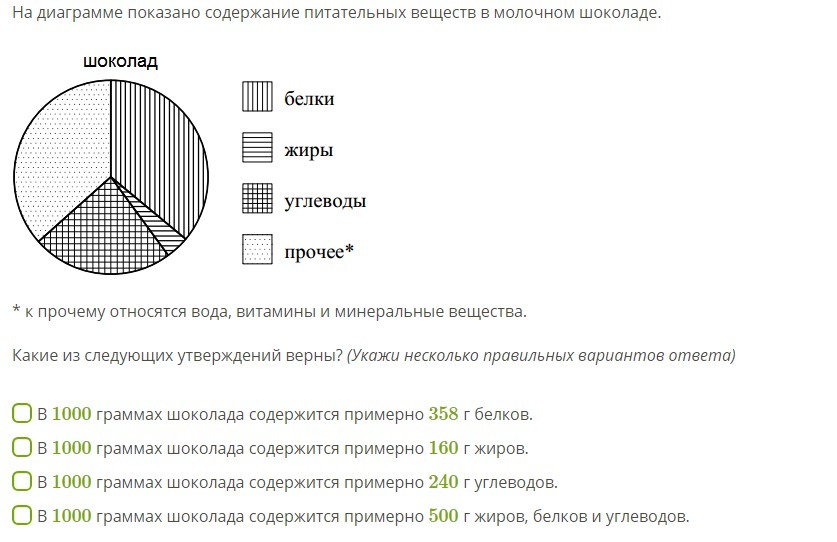 На диаграмме показано содержание питания
