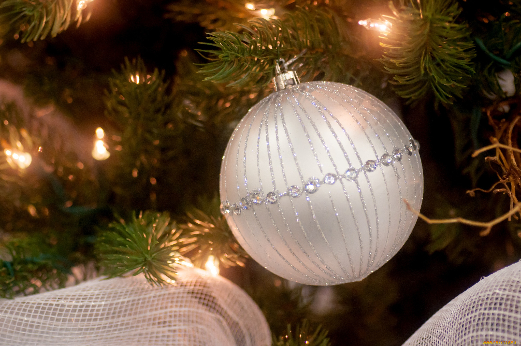 На ели белые шарики 108 фото
