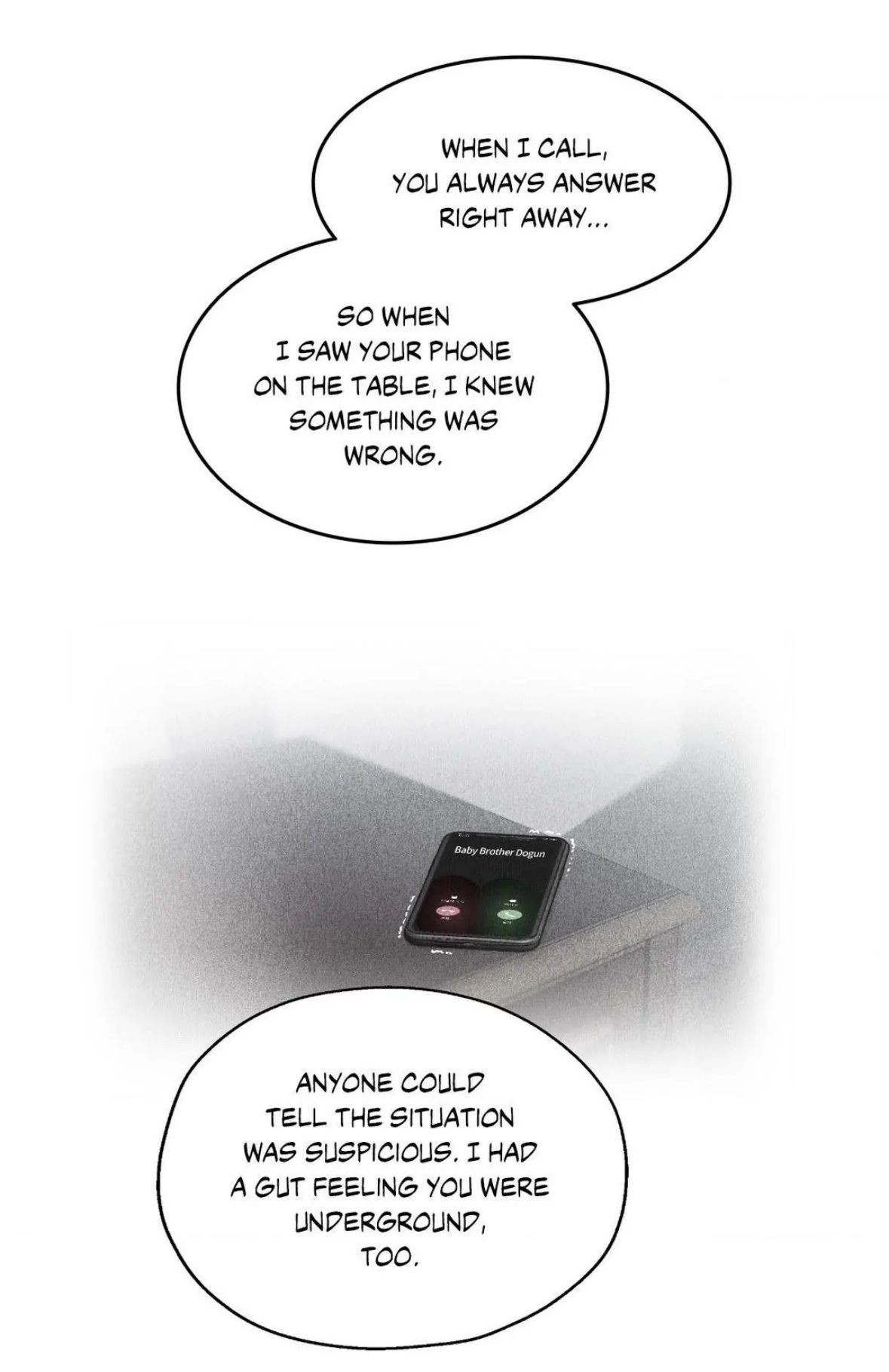 — Ты всегда отвечаешь сразу же, как я звоню... Так что когда я увидел твой телефон на столе, то сразу понял - что-то не так. Всё указывало на то, что здесь что-то неладное. Еще у меня было необъяснимое чувство того, что ты где-то внизу.