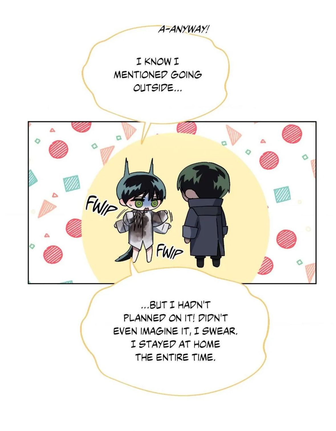 — З-знаю, я упоминал о выходе на улицу... Но я честно не планировал этого! Я даже не представлял себе всего этого, клянусь. Я всё это время оставался дома.