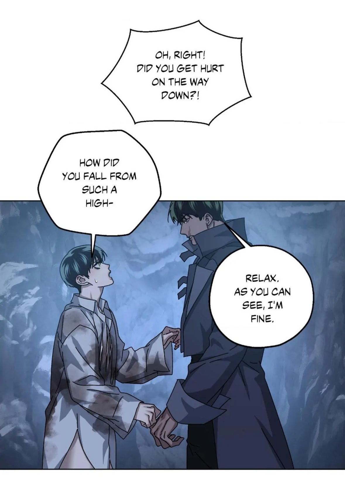 — Так, ладно! Ты не поранился по дороге сюда?! Как ты упал с такой высокой-