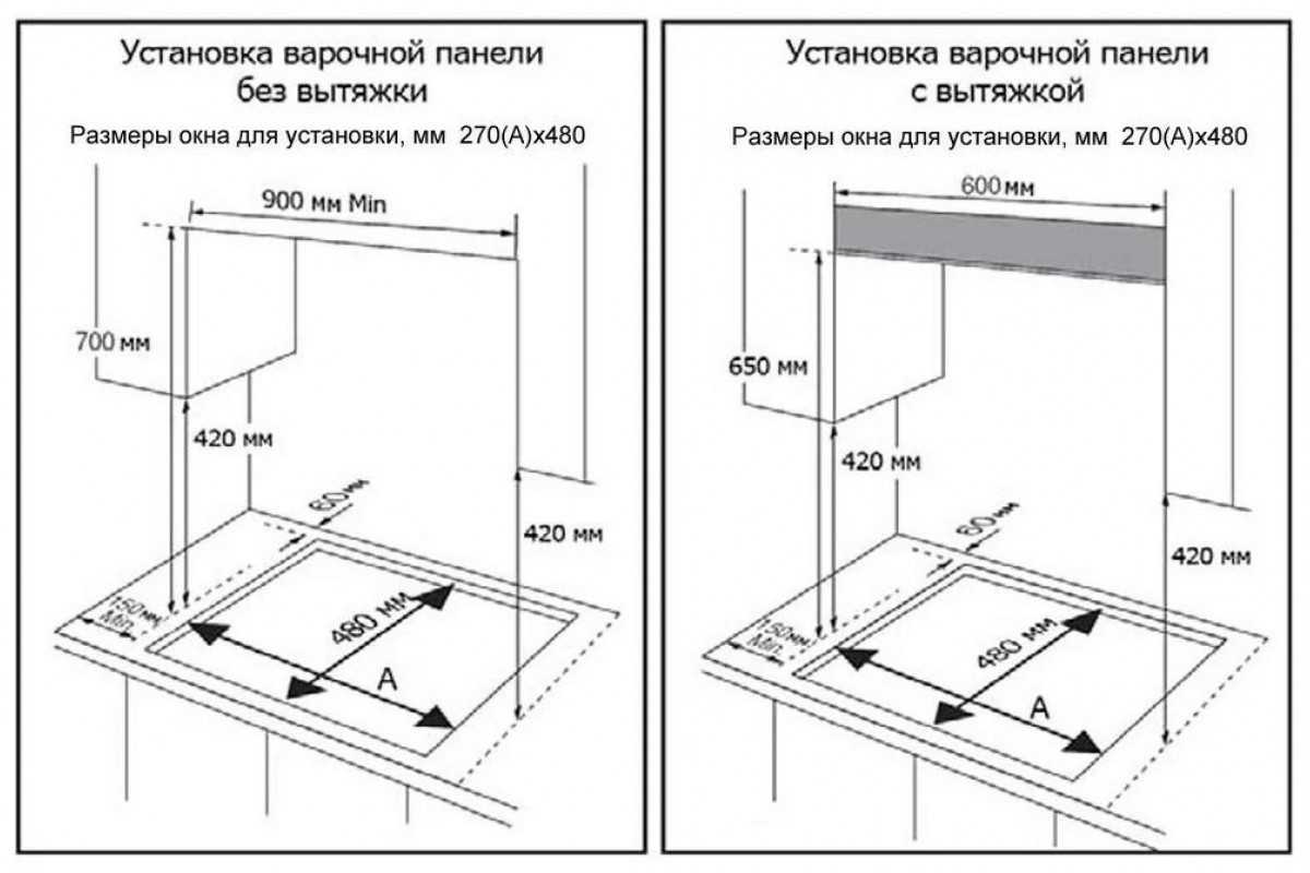 На каком расстоянии вытяжка от плиты