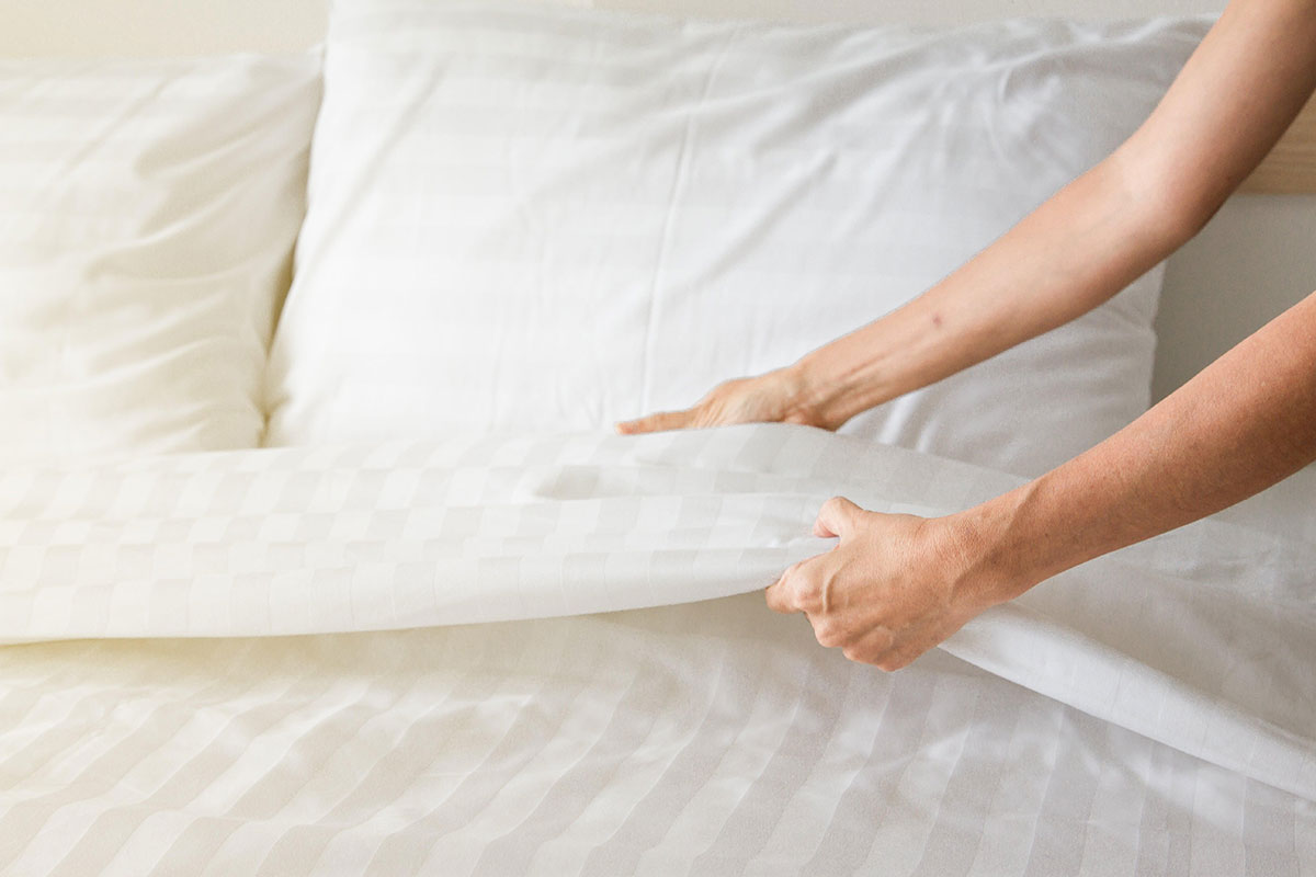 На постель кладу