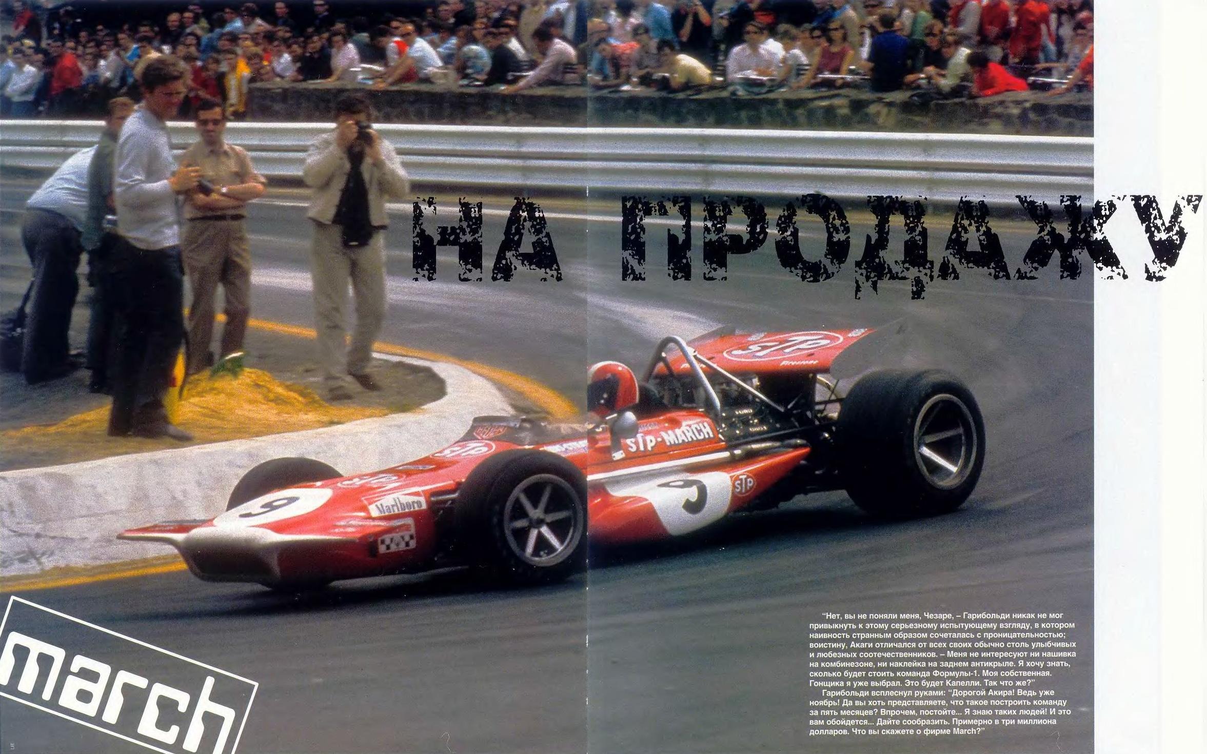 Нет, вы не поняли меня, Чезаре, - Гарибольди никак не мог привыкнуть к этому серьезному испытующему взгляду, в котором наивность странным образом сочеталась с проницательностью; воистину, Акаги отличался от всех своих обычно столь улыбчивых и любезных соотечественников. - Меня не интересуют ни нашивка на комбинезоне, ни наклейка на заднем антикрыле. Я хочу знать, сколько будет стоить команда Формулы-1. Моя собственная. Гонщика я уже выбрал. Это будет Капелли. Так что же?» Гарибольди всплеснул руками: «Дорогой Акира! Ведь уже ноябрь! Да вы хоть представляете, что такое построить команду за пять месяцев? Впрочем, постойте... Я знаю таких людей! И это вам обойдется... Дайте сообразить. Примерно в три миллиона долларов. Что вы скажете о фирме March?»