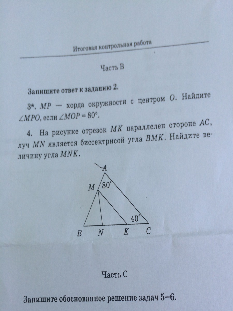 На рисунке отрезок мр параллелен стороне 105 фото