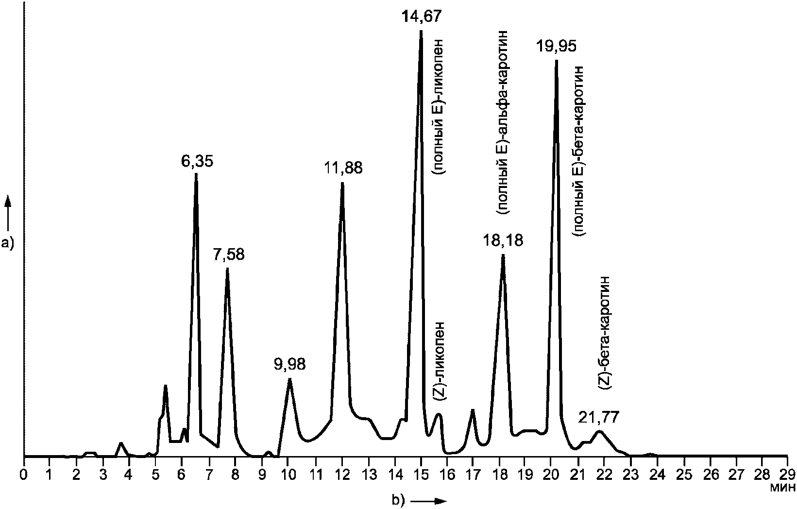 На рисунке приведены хроматограммы пигментов