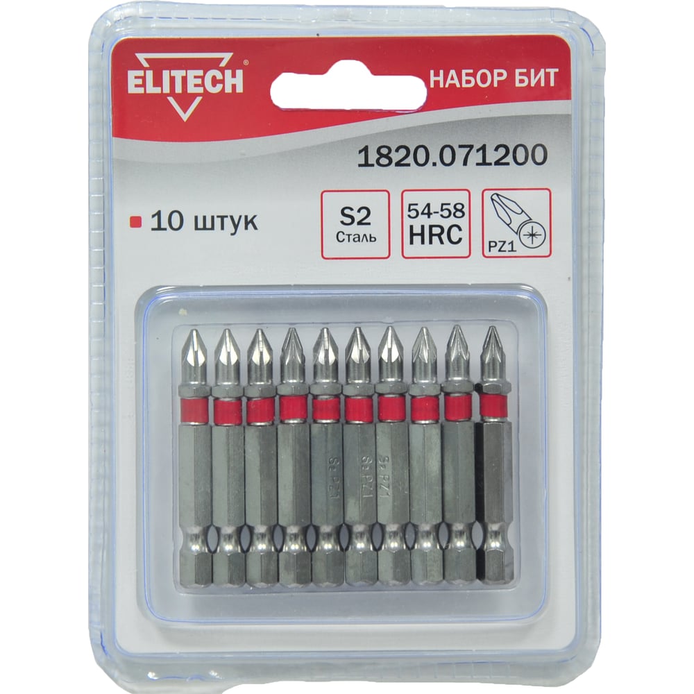 Биты (10 шт; PZ1; 50 мм; S2; 54-58 HRC) Elitech 1820.071200