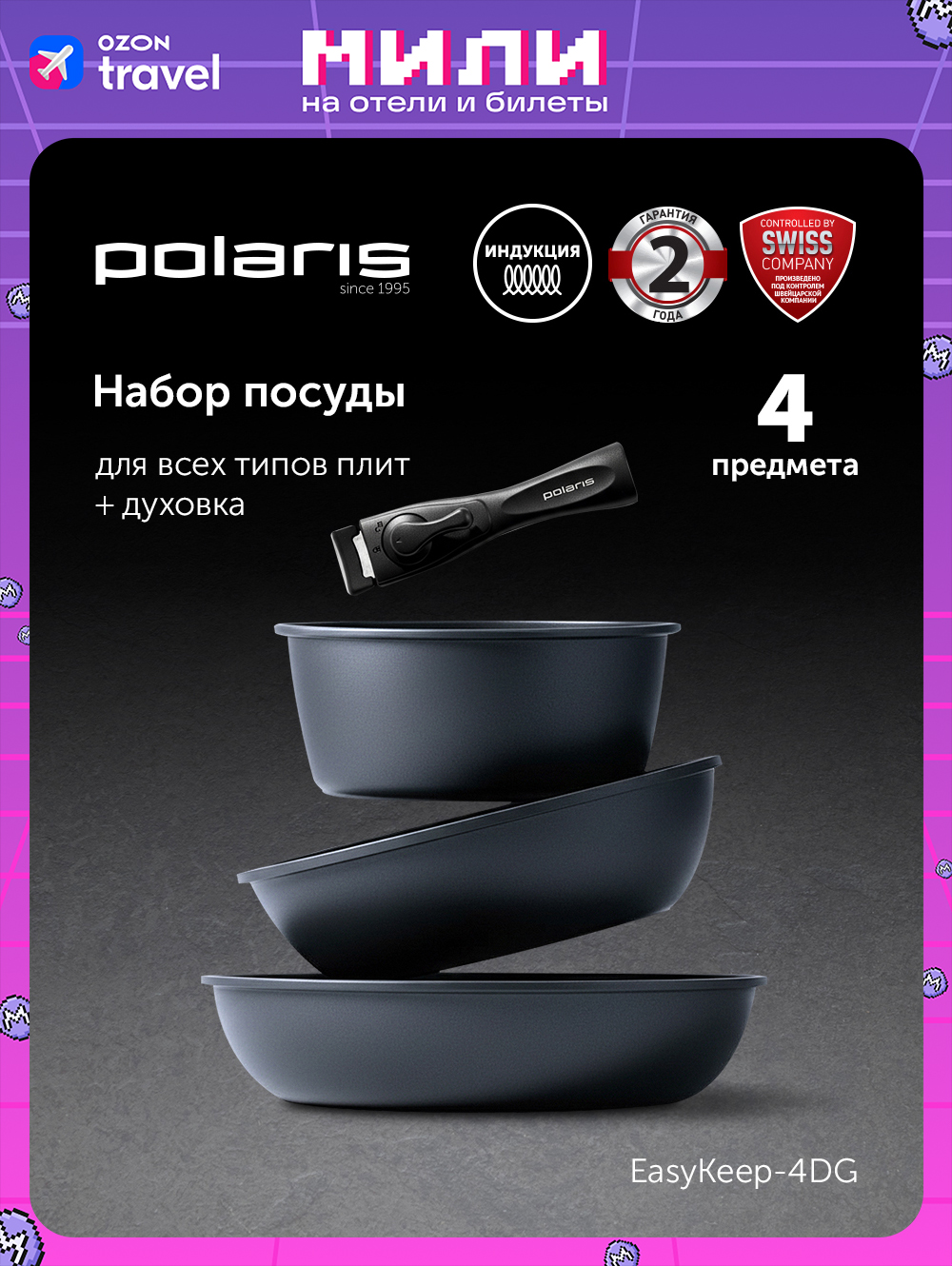 Набор посуды polaris easykeep 4dg