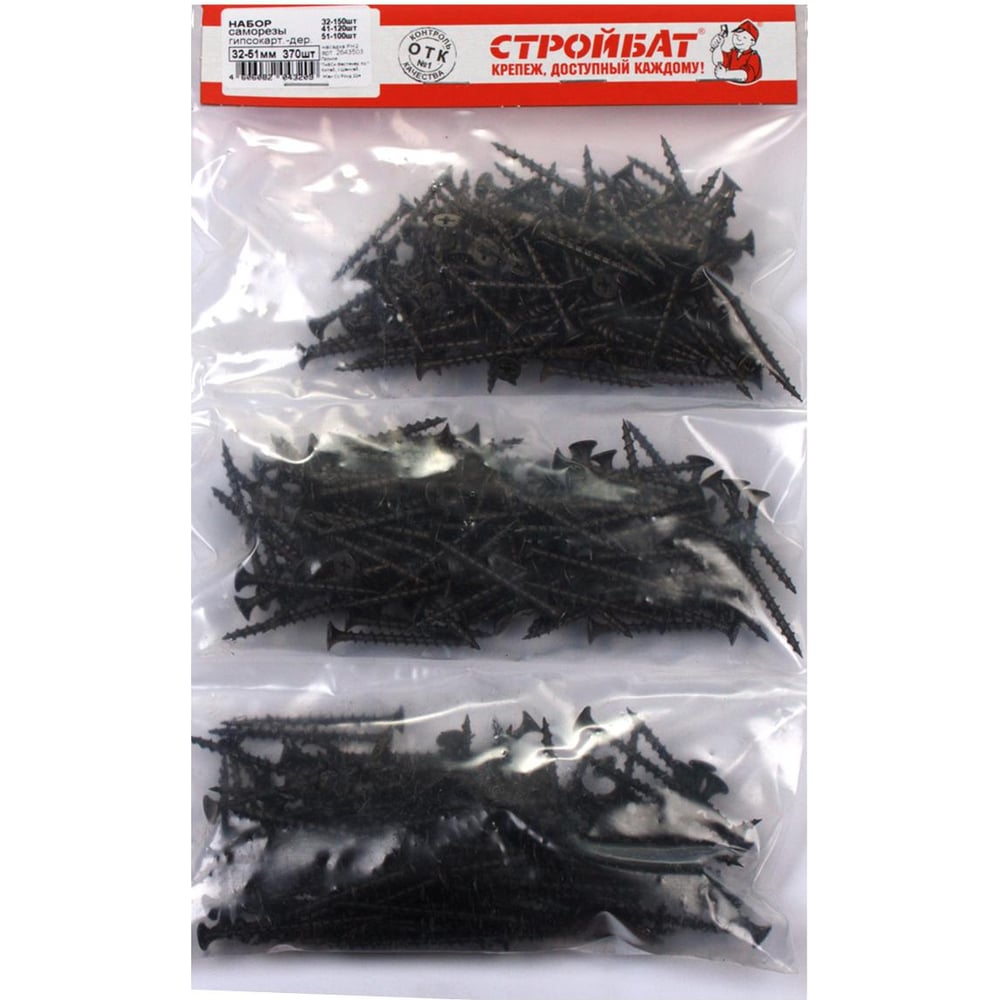 Набор саморезов Стройбат гипсокартон-дерево 32-51мм 370 шт 204441