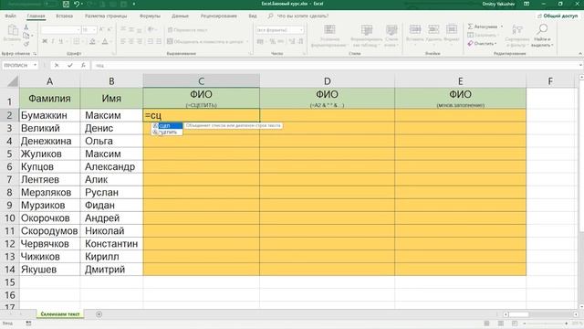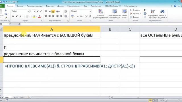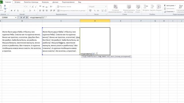 Набор текста в экселе