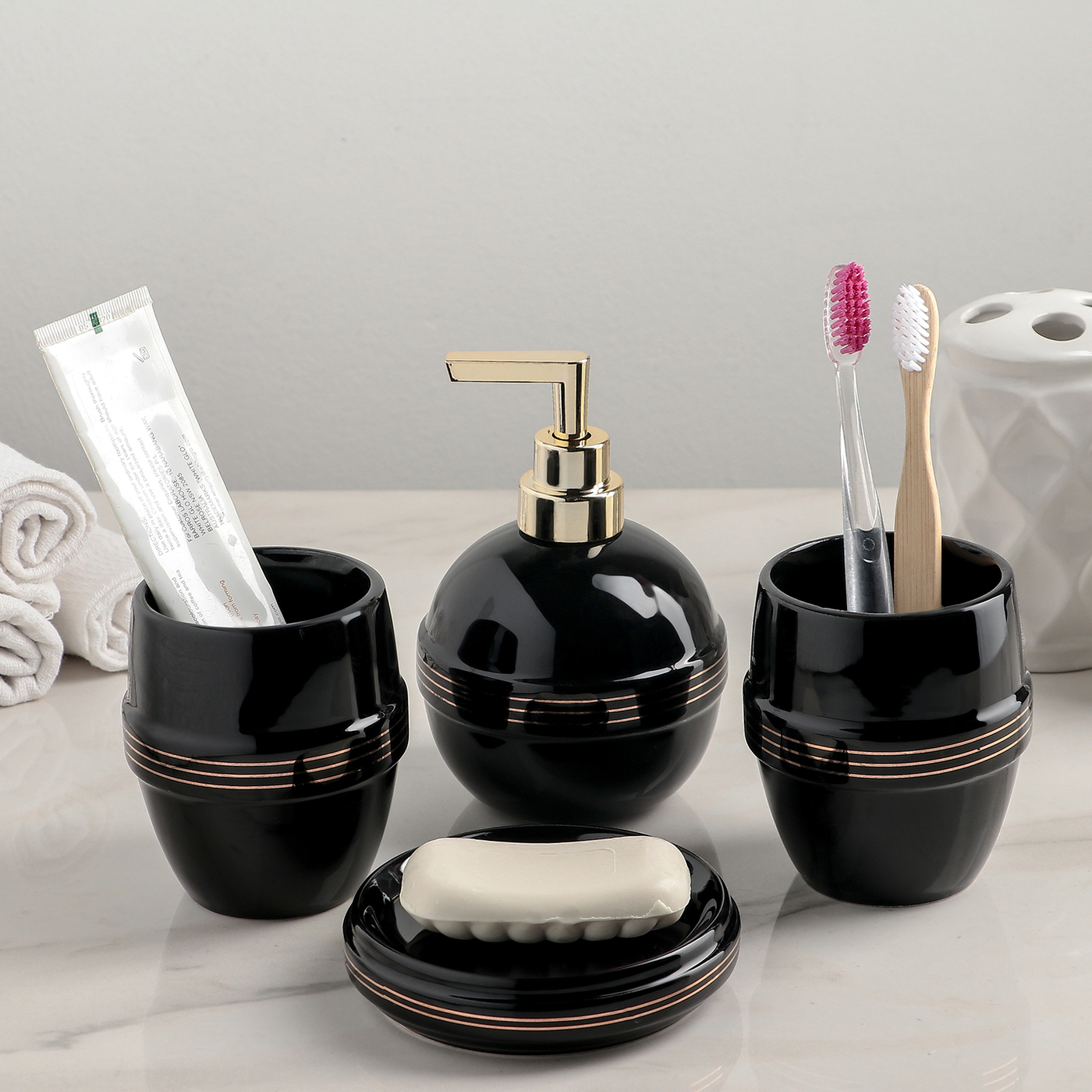 Наборы для ванной комнаты черные