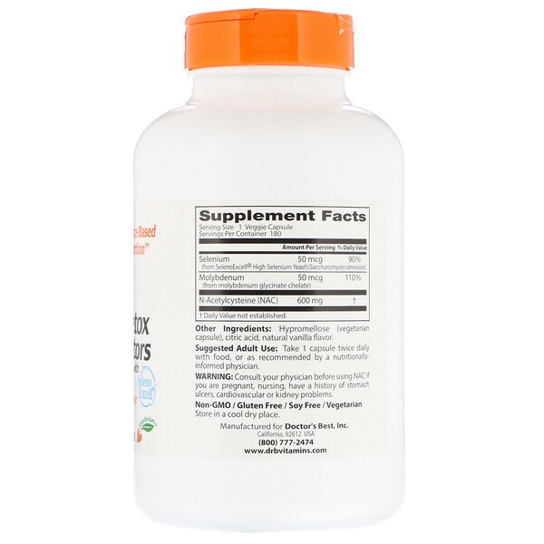 Мы приведем оптимальные варианты с точки зрения цены и качества . Doctor's Best, N-ацетилцистеин ( NAC ) для регуляции процесса детоксикации, 60 вегетарианских капсул . Бестселлер, 600мг, в составе селен для повышения эффективности . Now Foods, NAC (N-ацетилцистеин), 600 мг, 250 растительных капсул .