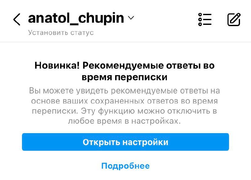 Начало переписки в инстаграм