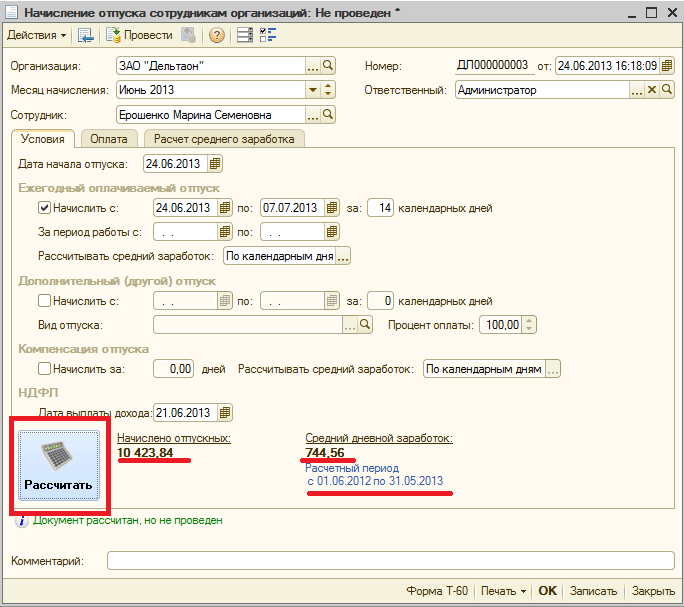 Начисление отпускных в 1с зуп