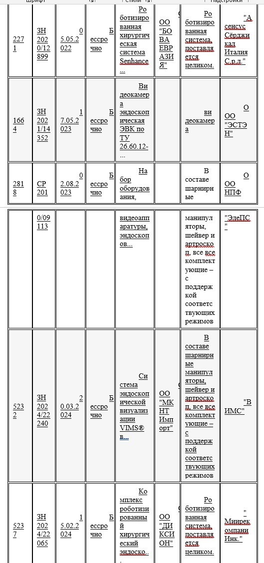 В рамках проведенных закупок заказчики не приобретали систему, оснащенную эндоскопическими инструментами, которые имеют шарнирные и механически управляемые наконечники с электроприводом.