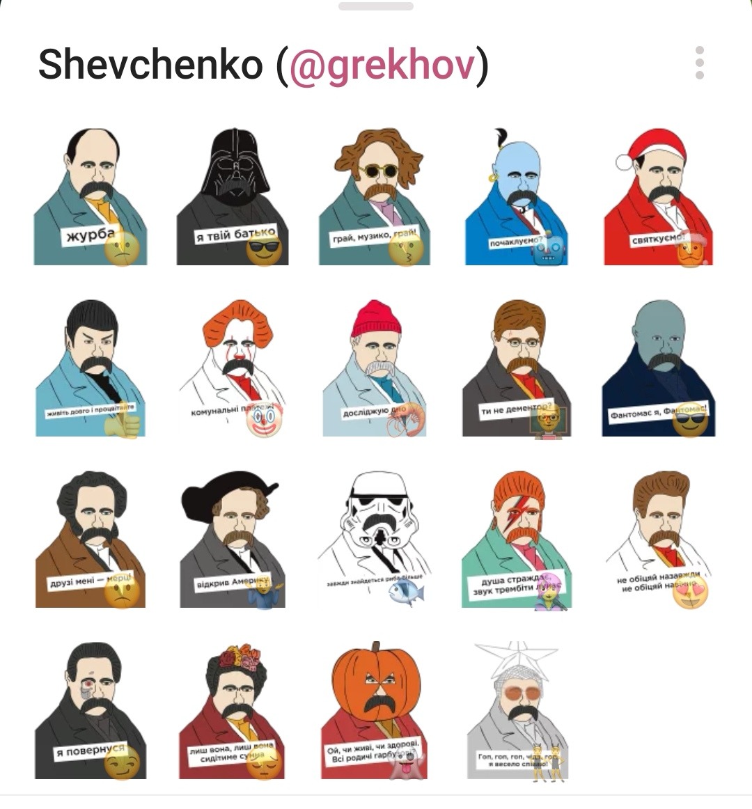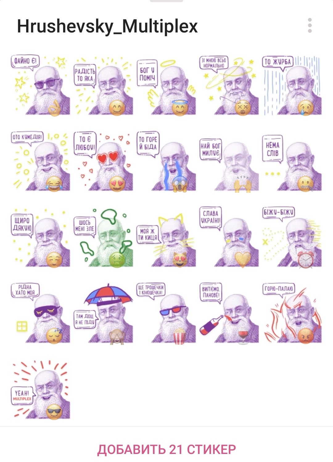 11. https://t.me/addstickers/Hrushevsky_Multiplex