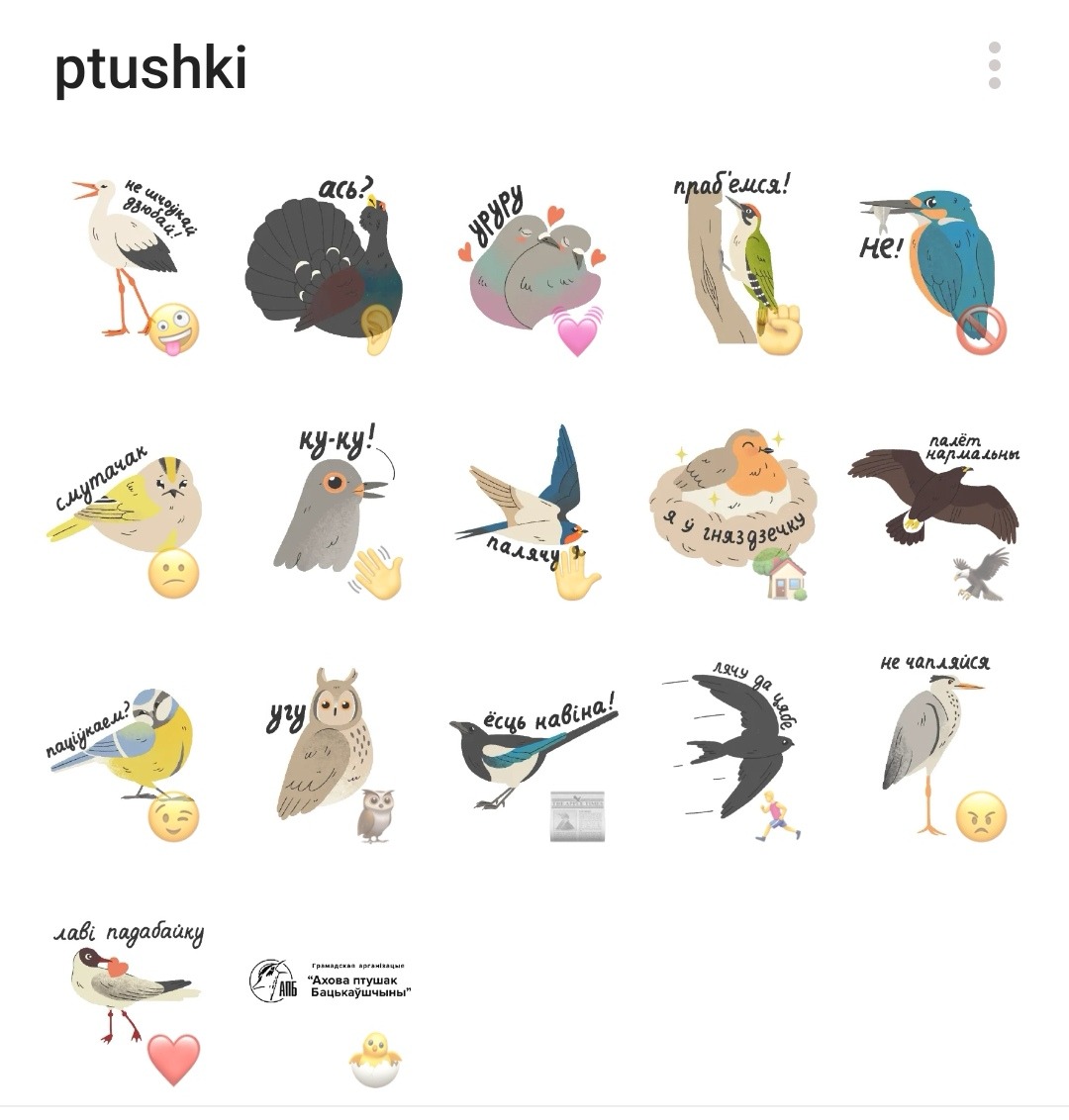 1. Ptushki https://t.me/addstickers/ptushki