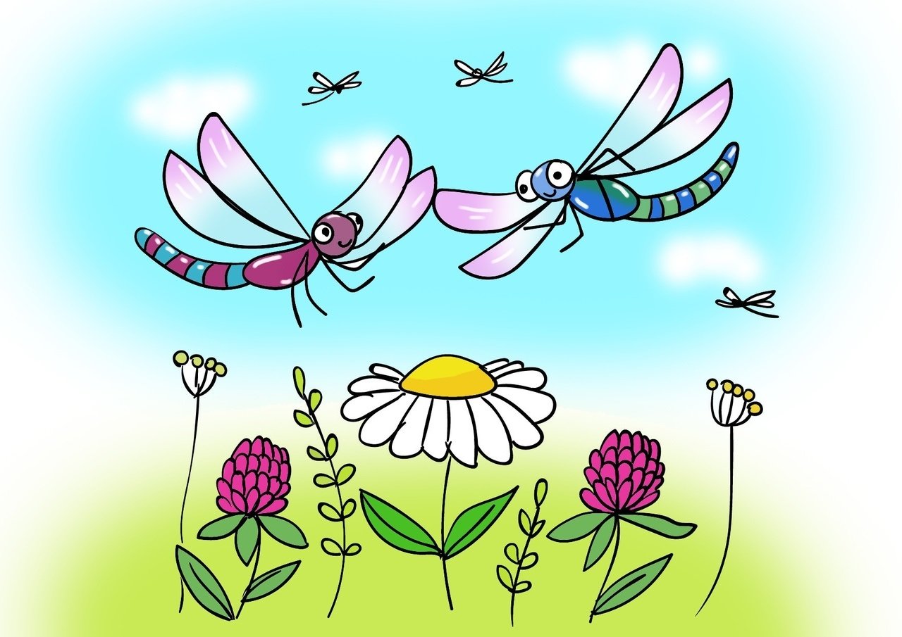 Над лугом летают веселые стрекозы