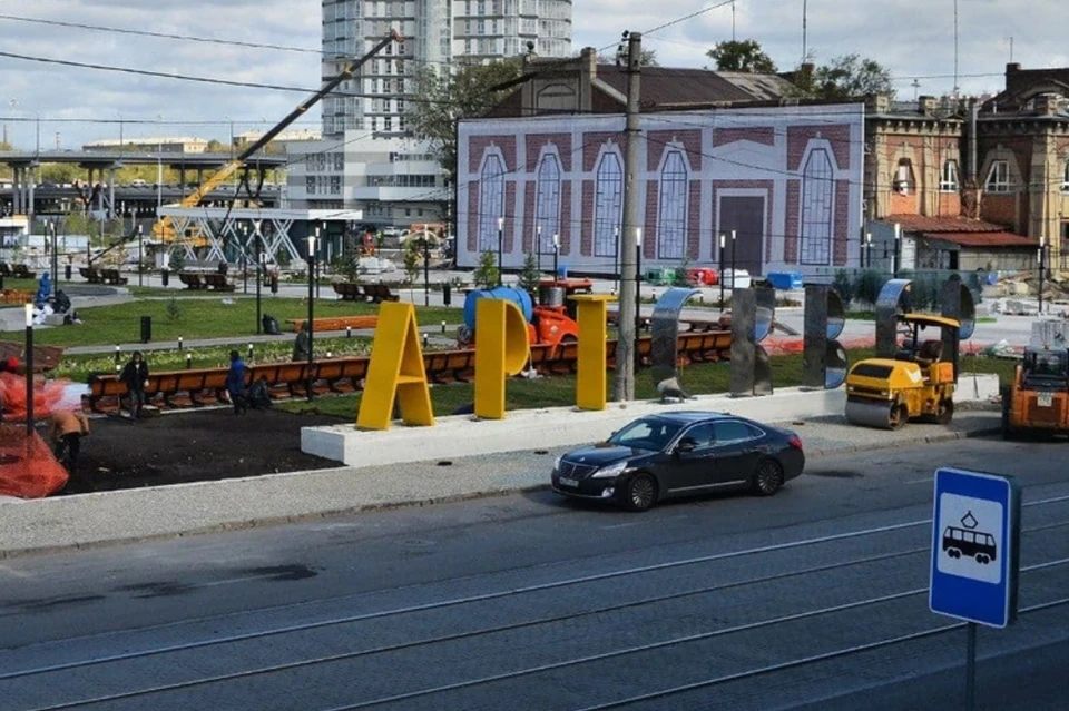 Часть надписи «АРТ СКВЕР» на новой набережной в Челябинске . . .