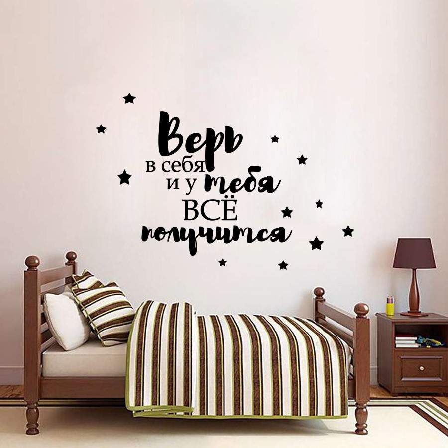 Надписи на стене в интерьере