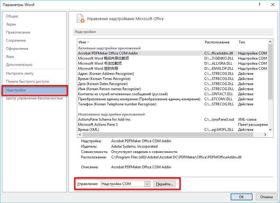 Надстройки майкрософт