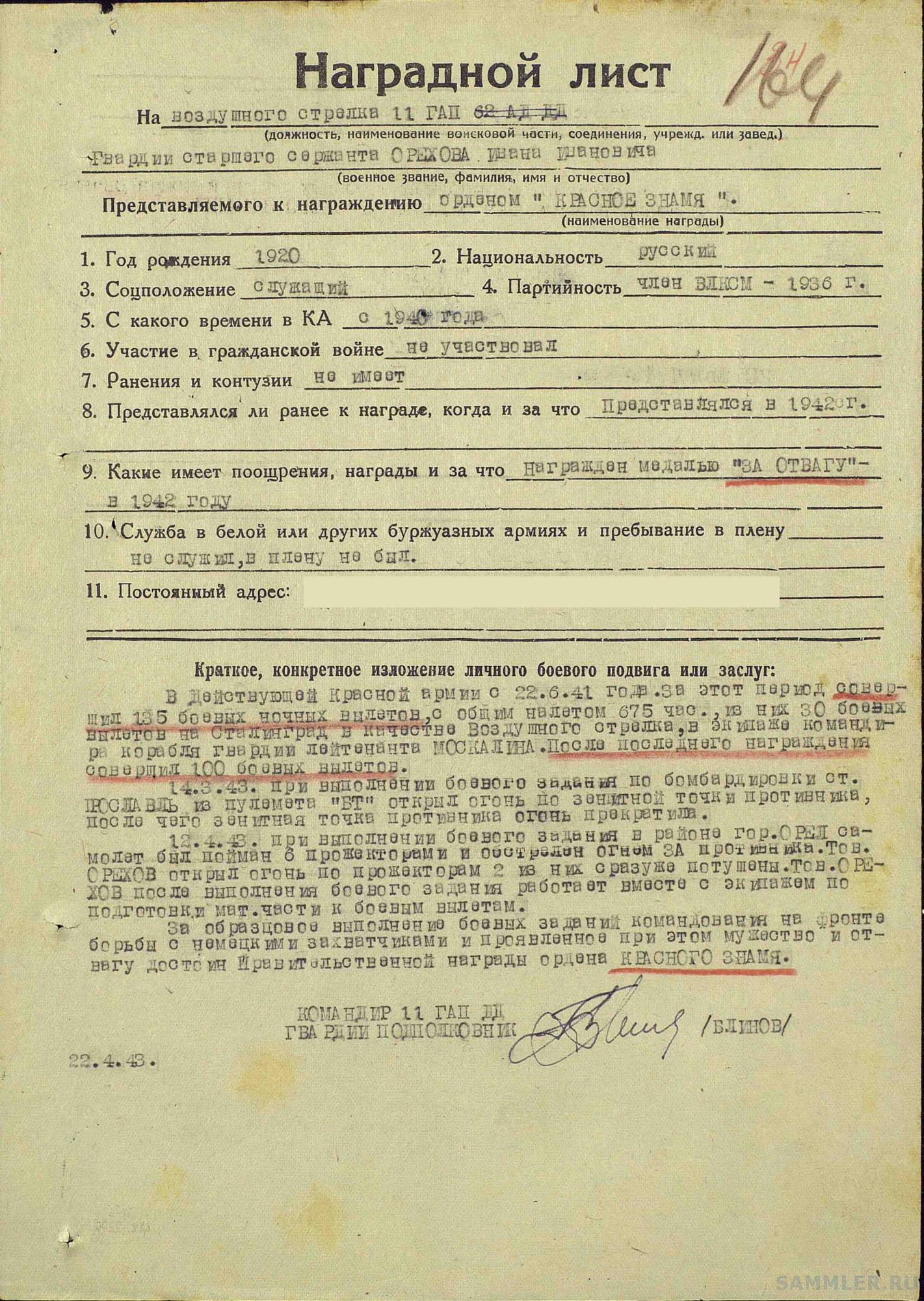Наградной лист на орден 158 фотографий