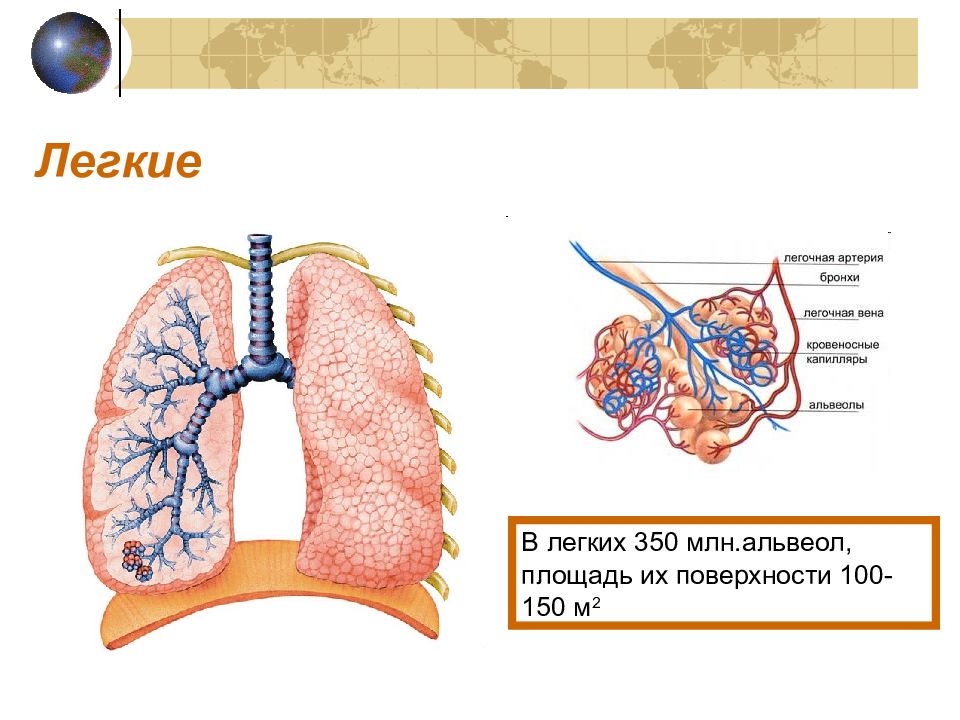 Наибольшая площадь легких у