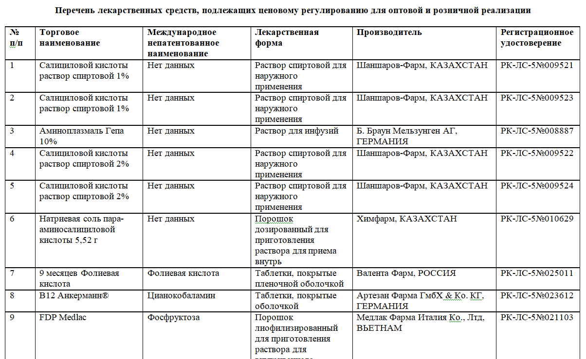 Наименования медикаментов