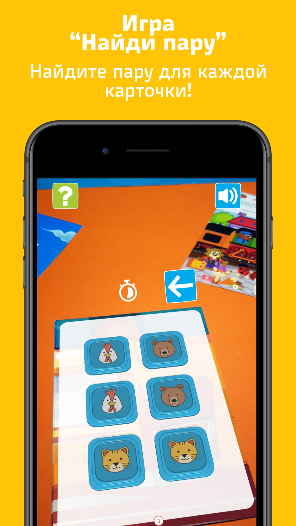 Ребёнок берёт одну карточку и пытается найти пару . Если картинки не совпадают, карточка возвращается на место, при этом надо постараться запомнить расположение картинок .