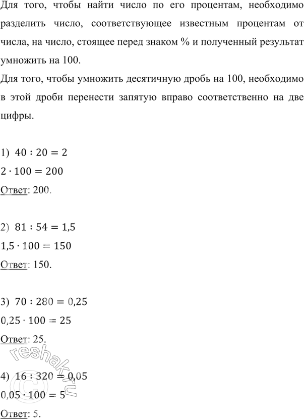 Найдите число если 20 этого числа равны 98 фотографий