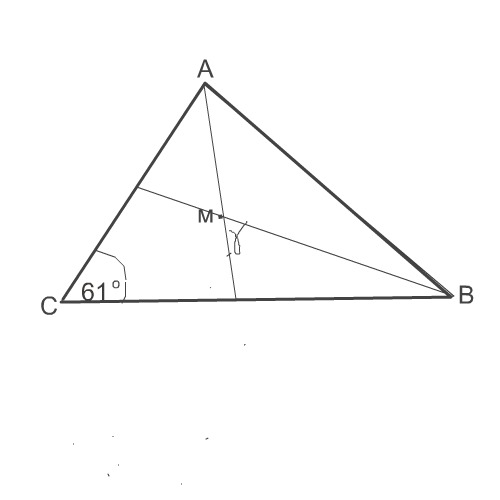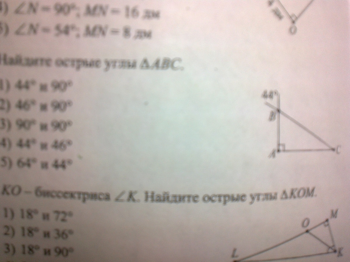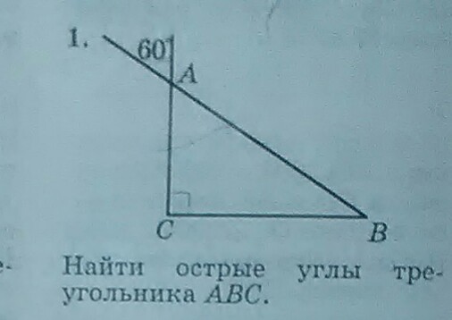 Найдите острый угол треугольника abc