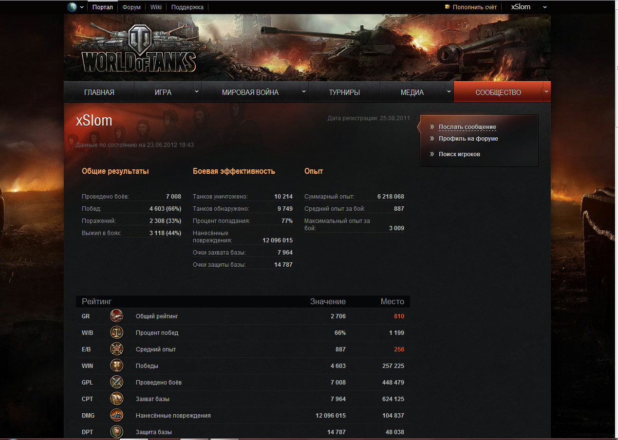 Найти игрока в танки