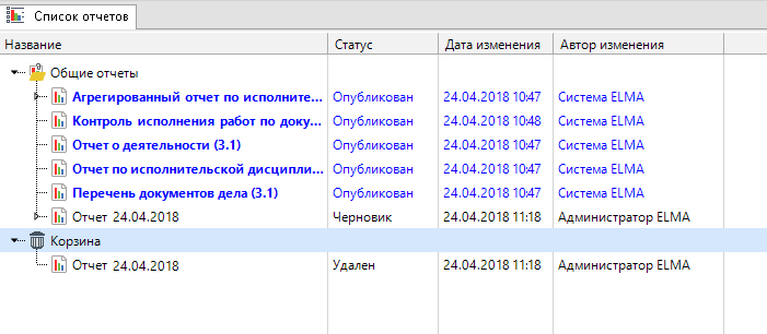 Найти историю отчетов